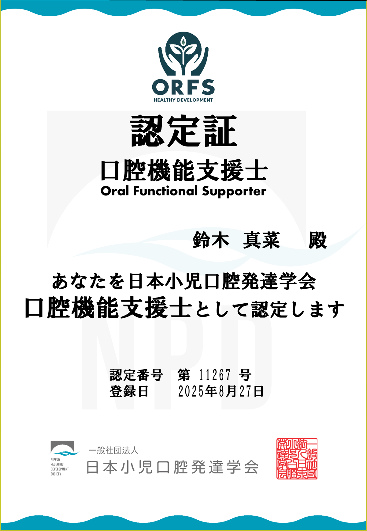 正しい噛み方や嚥下、離乳食の食べ方の学習、お口の周りの筋肉の発育だけでなく、